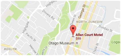 Allan Court Motel is conveniently located on George Street, Dunedin, and is one of the most central motels in Dunedin. Within walking distance of many landmarks including the hospital, Otago University and the central city, Allan Court Motel makes a good base whether you are visiting for business or pleasure and our comfortable rooms ensure you can relax upon your return.